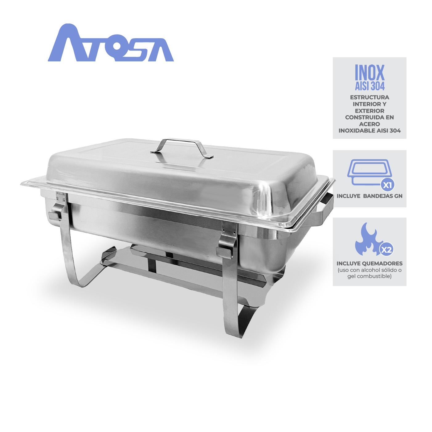 El Chafing Dish de Acero Inoxidable es ideal para mantener sus alimentos a la temperatura perfecta en cualquier buffet o evento.