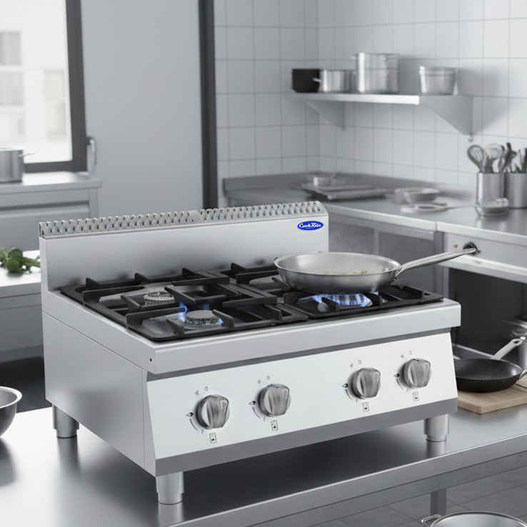 Con cuatro potentes quemadores, este anafe ofrece un rendimiento excepcional. Su diseño modular de 80 x 60,2 cm se integra a la perfección en cualquier espacio, permitiendo una configuración personalizada. La Potencia (W) de 48 kW (GN) / 40 kW (GLP) garantiza una cocción rápida y eficiente, ideal para restaurantes de alto volumen y hogares exigentes.